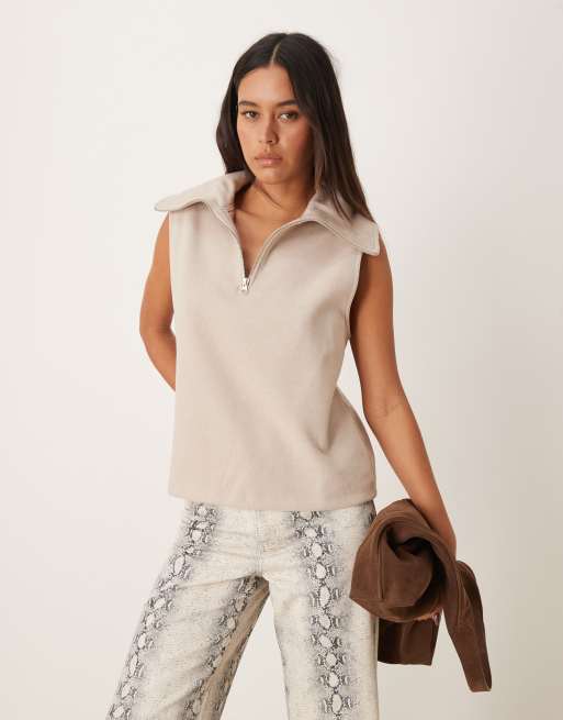 ASOS DESIGN - Débardeur ultra-doux à col zippé - Crème chaud