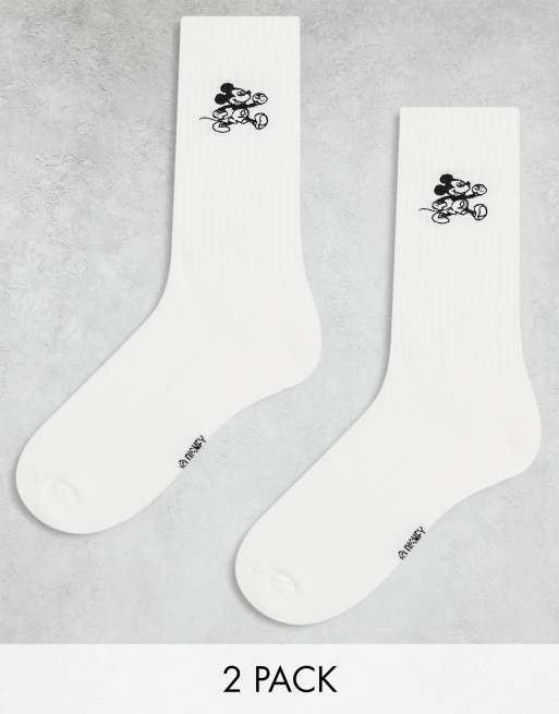 ASOS DESIGN - Disney - Lot de 2 paires de chaussettes à broderie Mickey Mouse - Blanc cassé