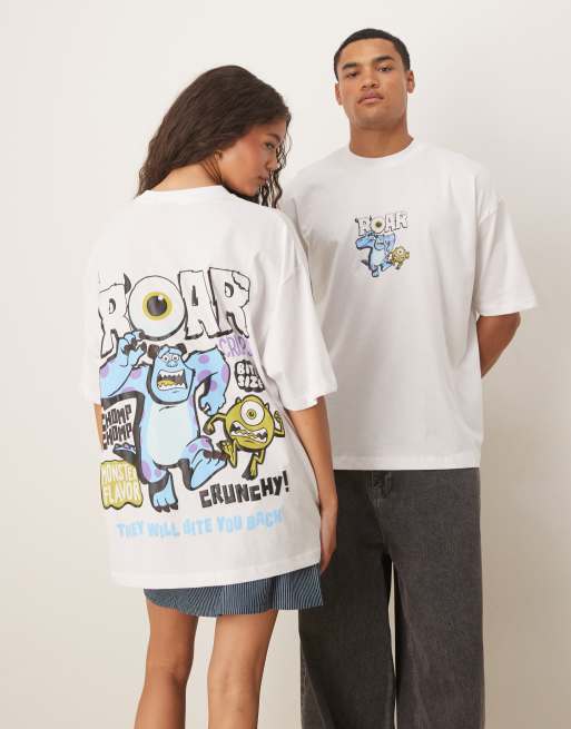 ASOS DESIGN - Disney Pixar - T-shirt unisexe oversize à imprimé Monstres & Cie - Blanc