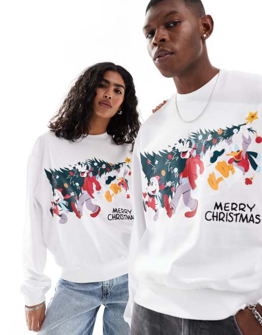 ASOS DESIGN - Disney - Sweat de Noël oversize coupe carrée avec imprimé Mickey Mouse et ses amis - Blanc