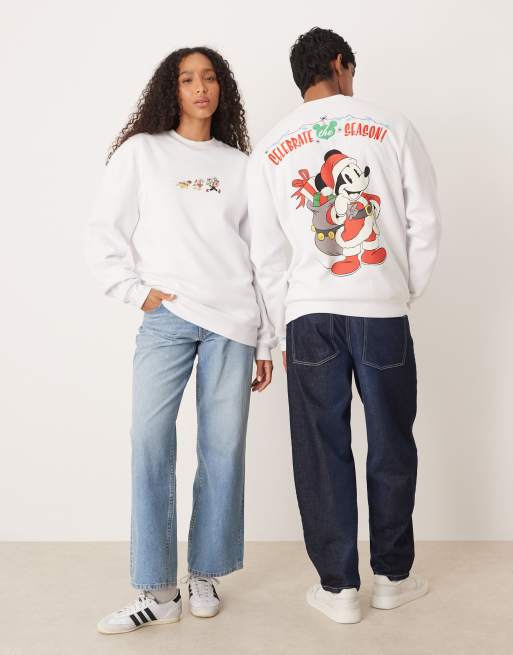 ASOS DESIGN - Disney - Sweat décontracté avec imprimé de Noël Mickey et ses amis - Blanc