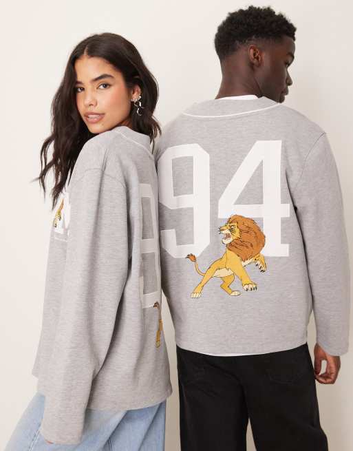 ASOS DESIGN - Disney - Sweat unisexe oversize avec encolure en Y et imprimés Le Roi Lion - Gris chiné