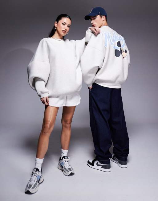 ASOS DESIGN - Disney - Sweat unisexe ultra oversize façon néoprène avec imprimés Mickey Mouse - Blanc chiné