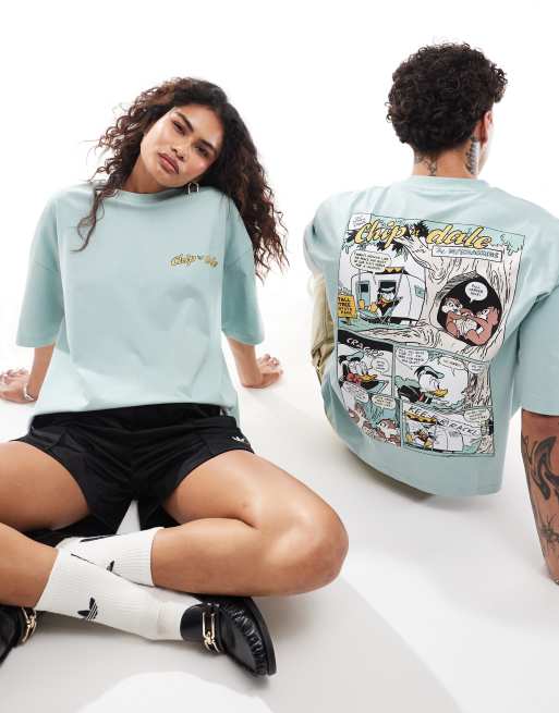 ASOS DESIGN - Disney - T-shirt unisexe oversize coupe carrée avec imprimé bande dessinée Tic & Tac - Bleu