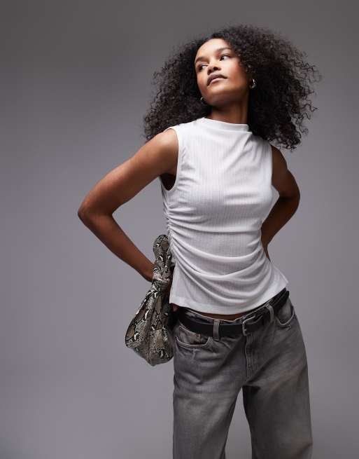 ASOS DESIGN - Dry Handle - Débardeur froncé à col montant - Ivoire