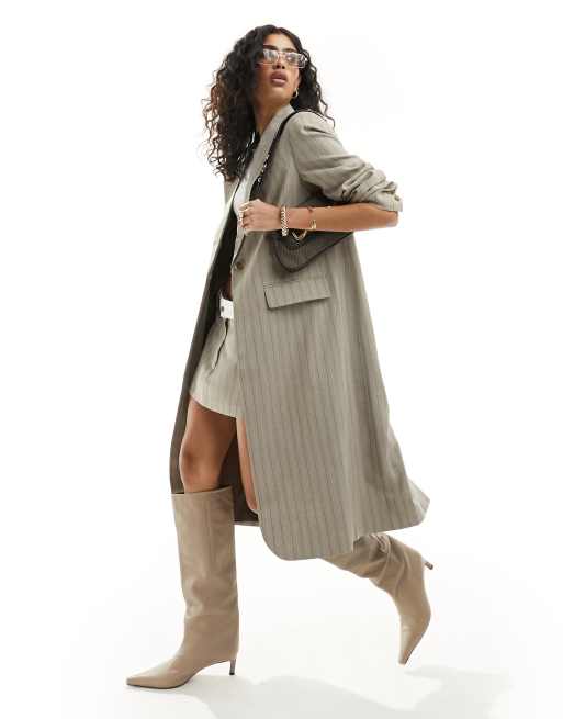 ASOS DESIGN - Duster - Blazer long à rayures - Beige