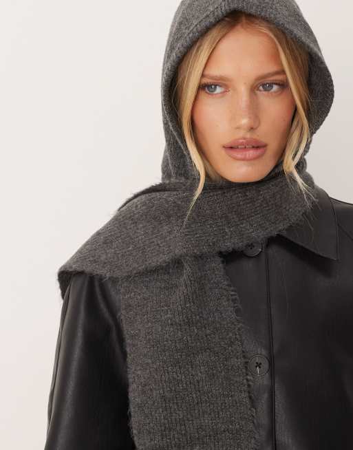 ASOS DESIGN - Écharpe à nouer avec capuche en maille - Gris anthracite