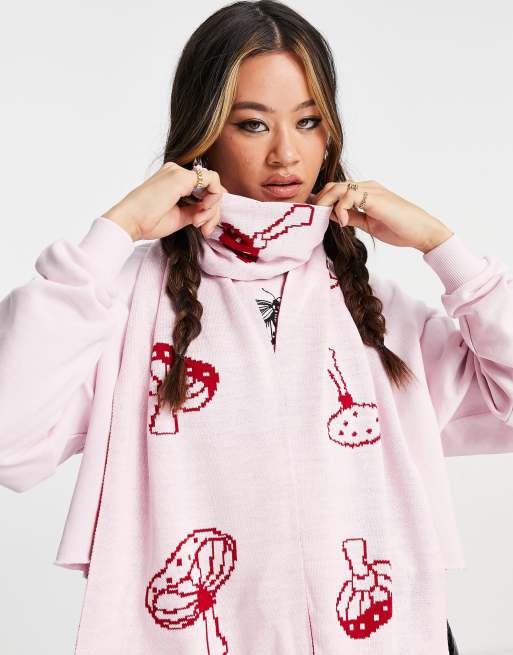 ASOS DESIGN - Écharpe champignon en maille jacquard - Rouge et rose