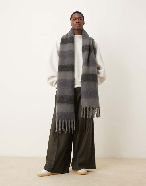 ASOS DESIGN - Écharpe duveteuse style couverture à rayures - Gris