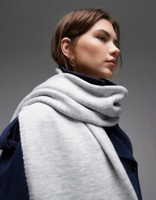 ASOS DESIGN - Écharpe en maille duveteuse brodée à la main - Gris