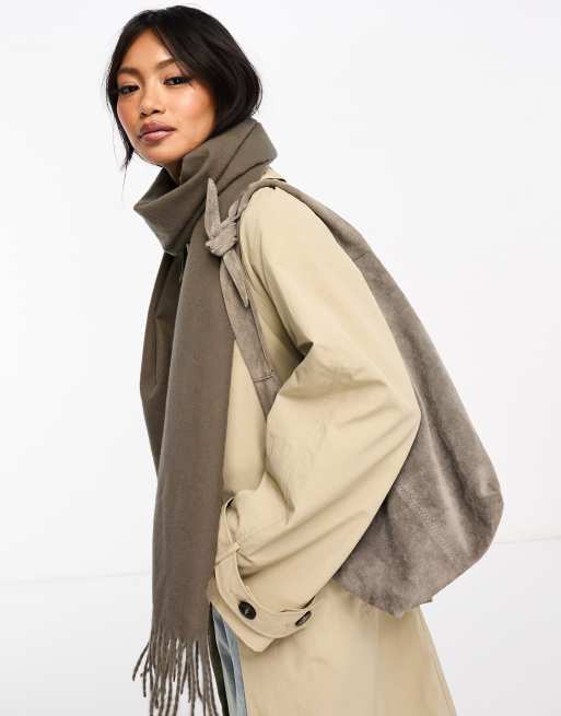 ASOS DESIGN - Écharpe tissée à franges - Mastic