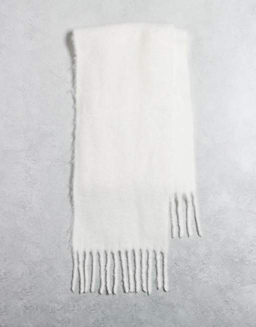 ASOS DESIGN - Écharpe tissée duveteuse à franges - Blanc neige