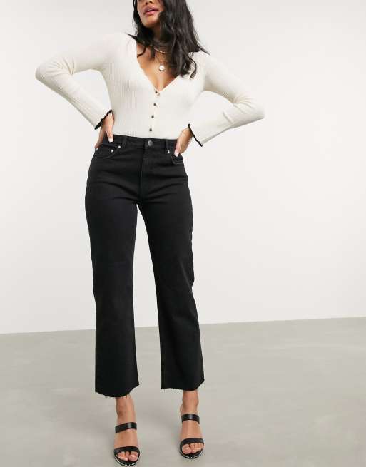 ASOS DESIGN -  Effortless - Jean taille haute coupe courte évasée - Noir