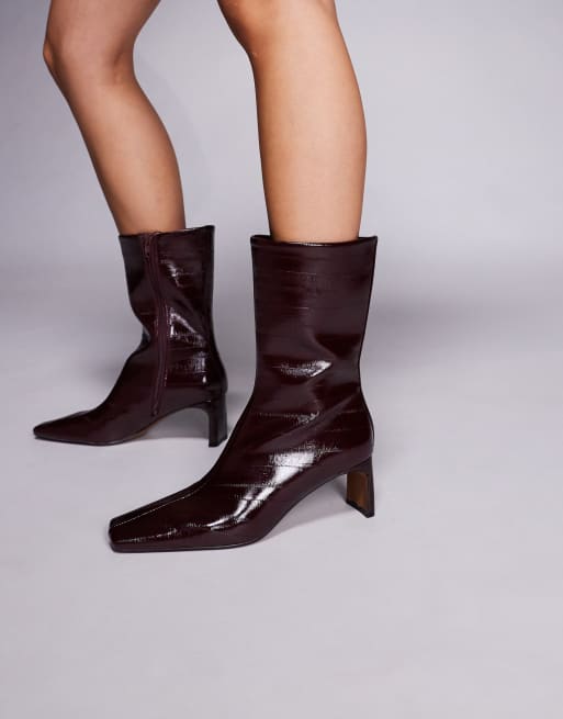 ASOS DESIGN - Eliza - Bottines à talon déporté - Bordeaux anguille