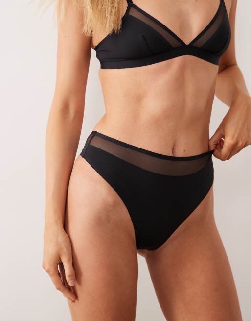 ASOS DESIGN - Ella - String échancré à taille haute en microfibre avec détail en tulle - Noir