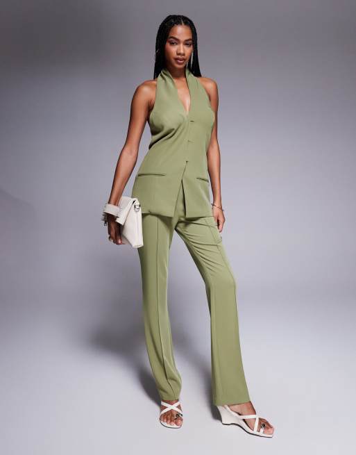 ASOS DESIGN - Ensemble ajusté avec veston dos nu boutonné et pantalon évasé - Olive