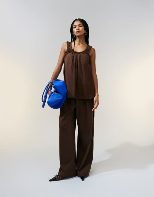 ASOS DESIGN - Ensemble avec pantalon ample et débardeur à encolure froncée - Chocolat