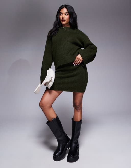 ASOS DESIGN - Ensemble avec pull oversize duveteux à manches amples et mini-jupe - Kaki