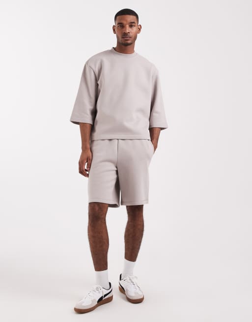 ASOS DESIGN - Ensemble avec sweat décontracté à manches courtes et short oversize long - Gris