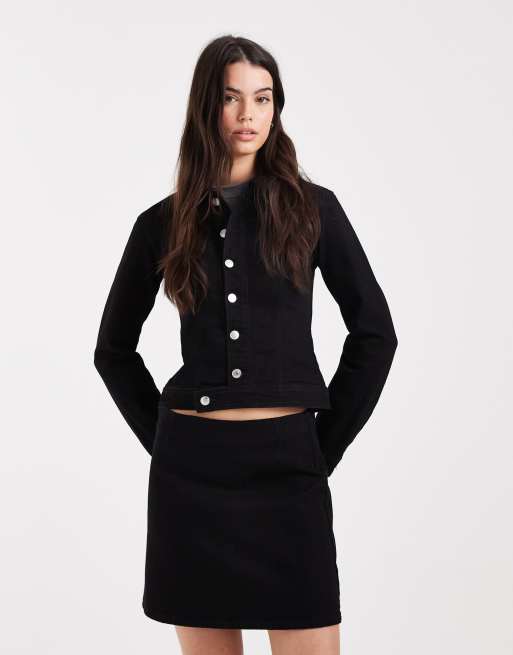 ASOS DESIGN - Ensemble avec veste en jean à poche et mini-jupe - Noir épuré