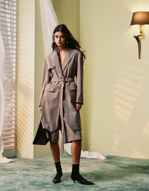 ASOS DESIGN - Ensemble blazer long avec rabat anti-tempête et short - Champignon