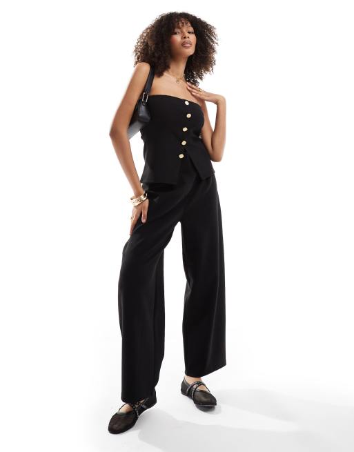 ASOS DESIGN - Ensemble boutonné avec top bandeau et pantalon de jogging confort - Noir