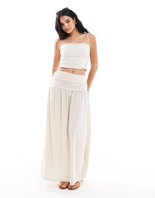 ASOS DESIGN - Ensemble caraco texturé froncé sur les côtés et jupe longue - Taupe
