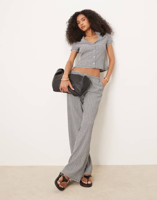 ASOS DESIGN - Ensemble chemise à col à revers coupe rétrécie et pantalon - Noir et blanc vichy