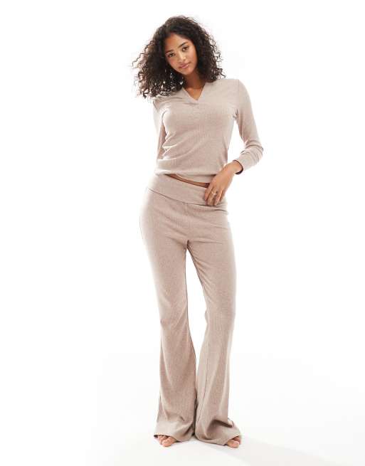 ASOS DESIGN - Ensemble confort avec bords en velours côtelé - Marron clair