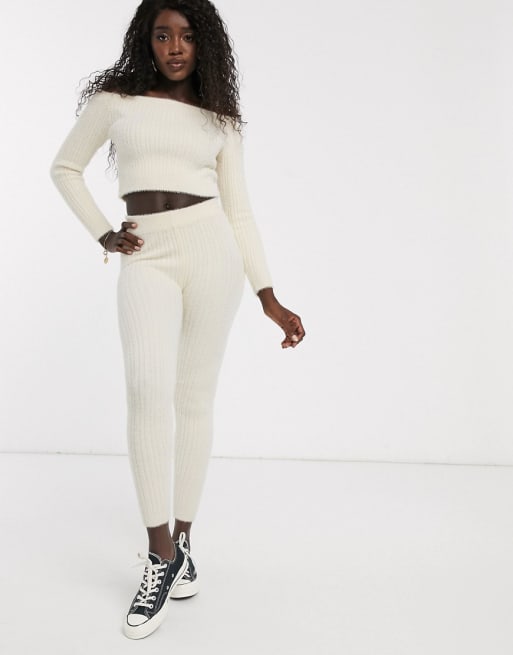 ASOS DESIGN - Ensemble côtelé duveteux - Crème
