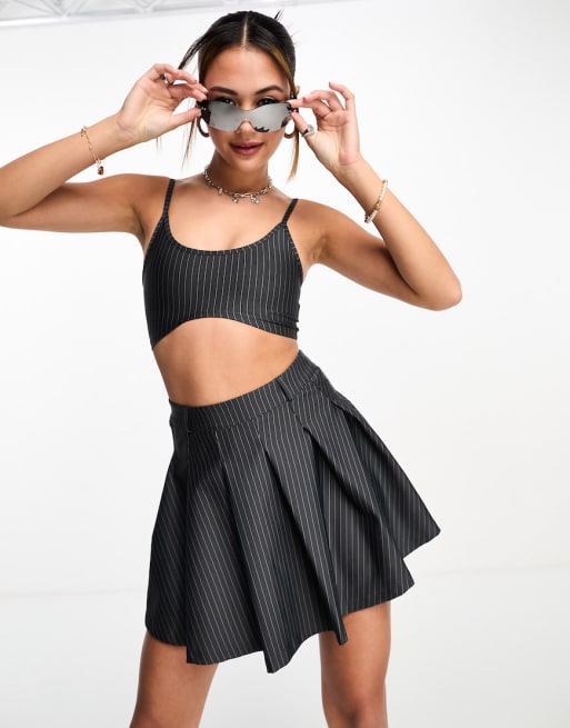 ASOS DESIGN - Ensemble crop top à bretelles et mini-jupe plissée à rayures fines