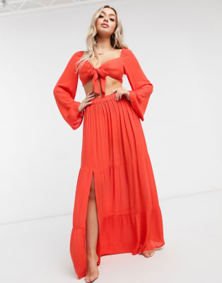 ASOS DESIGN - Ensemble de plage long noué devant - Rouge