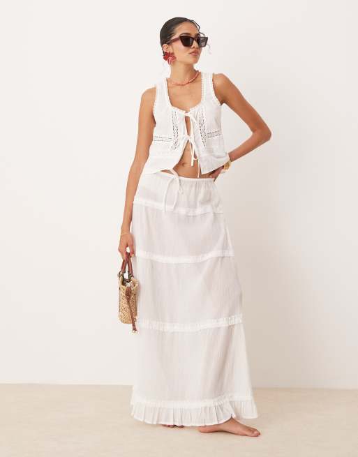 ASOS DESIGN - Ensemble de plage texturé avec empiècements en dentelle - Blanc