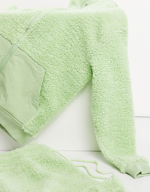 ASOS DESIGN - Ensemble de survêtement imitation peau de mouton - Vert menthe