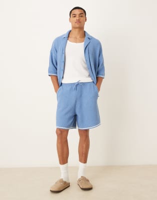 ASOS DESIGN - Ensemble décontracté en maille avec short et polo boutonné - Bleu clair