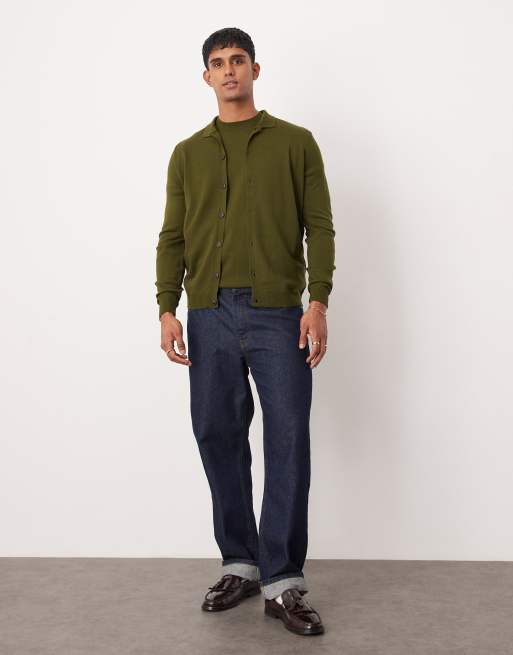 ASOS DESIGN - Ensemble en maille avec t-shirt et gilet boutonné - Kaki