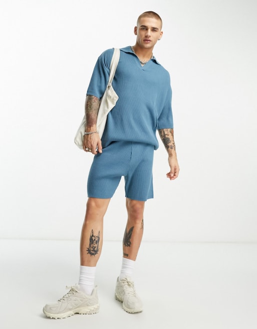 ASOS DESIGN - Ensemble en maille côtelée légère - Bleu