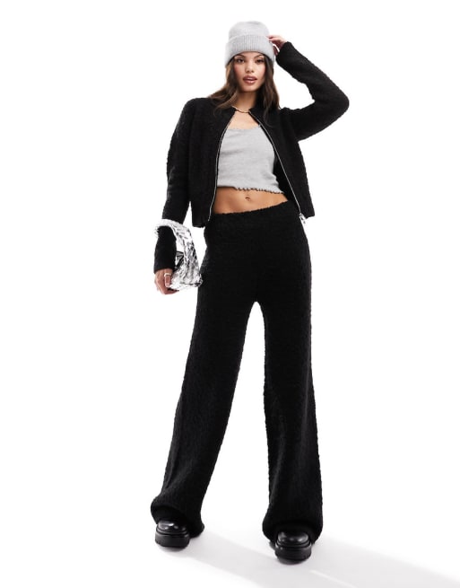 ASOS DESIGN - Ensemble en maille duveteuse avec gilet zippé et pantalon - Noir