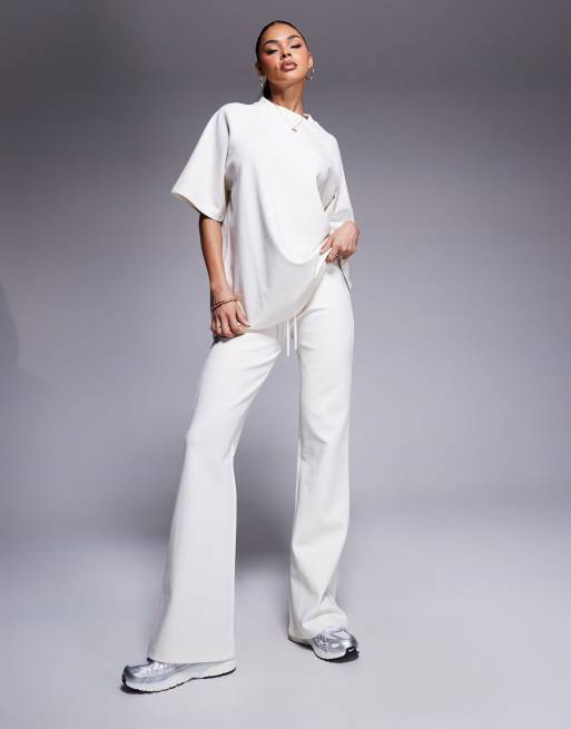 ASOS DESIGN - Ensemble en maille interlock avec pantalon de jogging évasé et t-shirt - Lait de coco