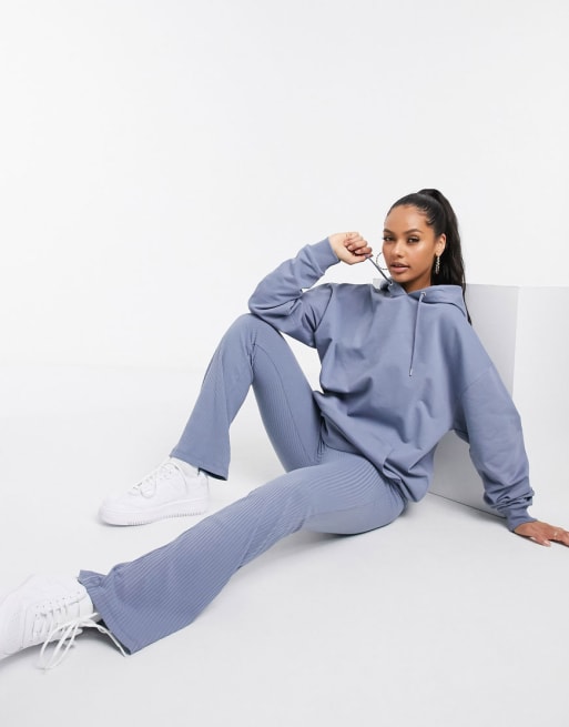 ASOS DESIGN - Ensemble hoodie boyfriend oversize et legging évasé - Bleu cendré