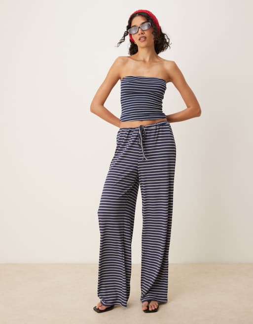 ASOS DESIGN - Ensemble long à rayures - Bleu marine