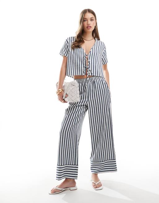 ASOS DESIGN - Ensemble noué en popeline à rayures - Bleu
