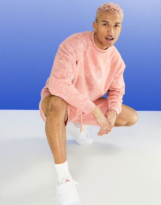 ASOS DESIGN - Ensemble oversize avec motif lignes - Pêche délavé