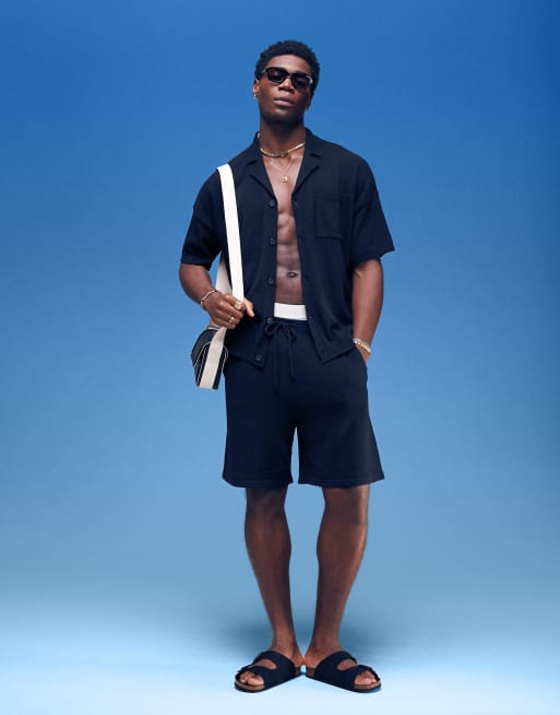 ASOS DESIGN - Ensemble oversize avec short et polo texturé - Noir