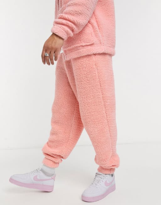 ASOS DESIGN - Ensemble oversize duveteux en imitation peau de mouton - Rose