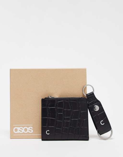 ASOS DESIGN - Ensemble portefeuille et porte-clés en cuir avec initiale C
