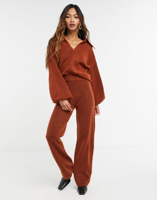 ASOS DESIGN - Ensemble pull à col ouvert et pantalon - Rouille