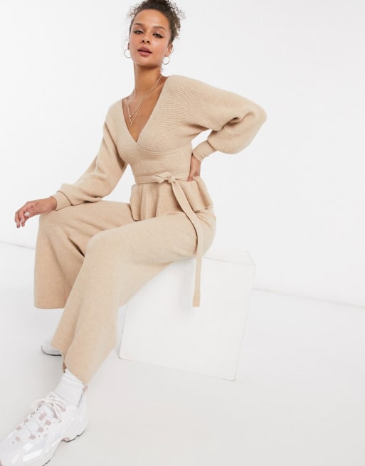 ASOS DESIGN - Ensemble pull croisé et pantalon - Grège
