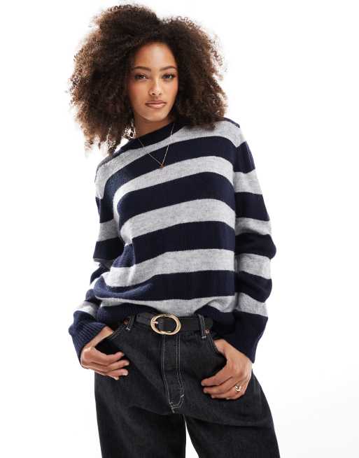 ASOS DESIGN - Ensemble pull et pantalon duveteux à rayures - Bleu et gris