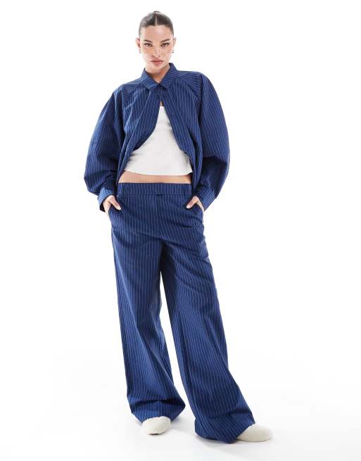 ASOS DESIGN - Ensemble rayé avec pantalon taille basse et chemise décontractée - Bleu